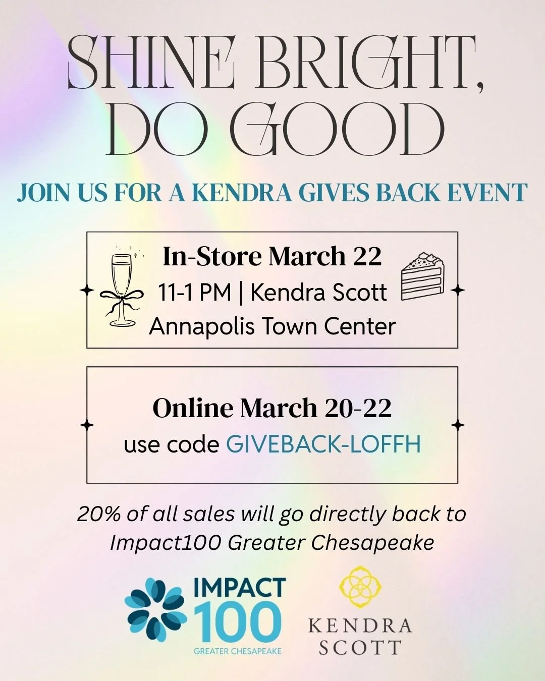 Come shop for a cause with us at Kendra Scott Annapolis, benefiting Impact100 Greater Chesapeake!
